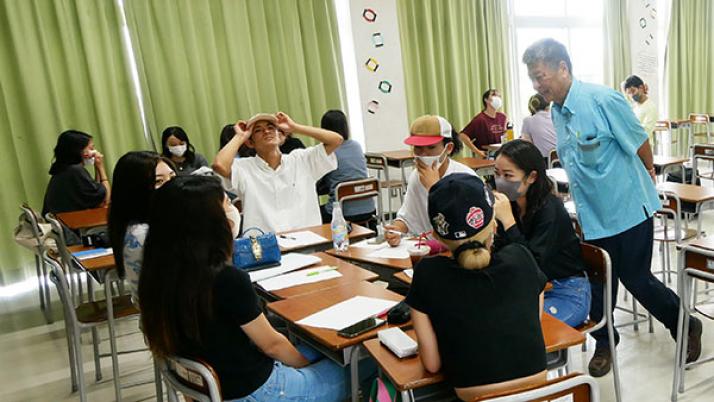 学生に対して『沖縄県内での地域活性化』や『ラオスでの国際開発』について、