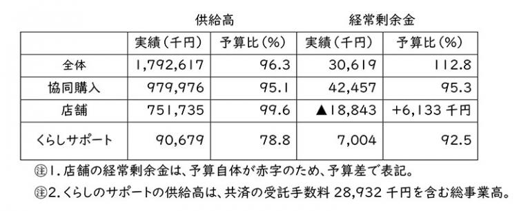 供給高は予算比96.3%ながら、経費が予算比96.0%と予算内執行となったことで、経常剰余金は30,619千円で、予算比112.8%と達成することが出来ました。