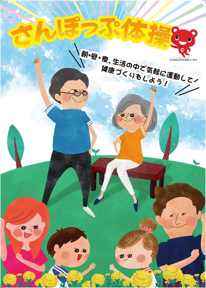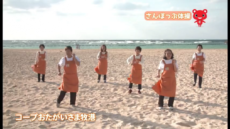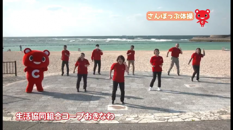宜野湾社会福祉協議会とコープおきなわで「さんぽっぷ体操」を制作しました。宜野湾市内では、自治会にて齢者の居場所づくりに取り組んでいますが、参加者から「座ってできるリズム体操」や「誰でも気軽に楽しめる体操」を望む声があり、社協では新たなオリジナル体操を作りたいとの思いを持っていました。