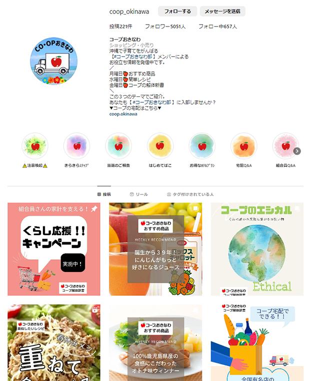 コープおきなわでは2021年5月より、インスタグラムのコープおきなわ公式アカウントを 立ち上げ、その運営をパナヌマ(ソイラボ)さんに委託しています。(委託は2022年より)