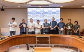 写真は、浦添市社会福祉協議会さんへの贈呈式&商品受け取りの様子