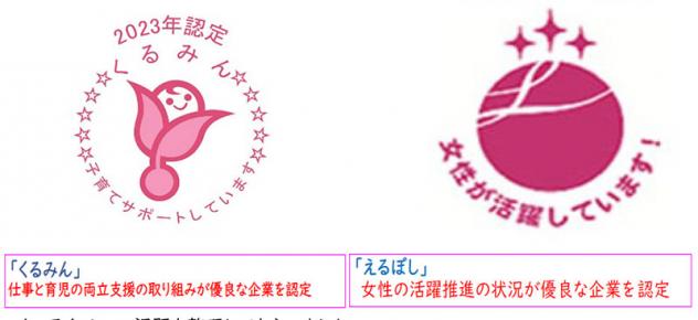 優先課題1.は「えるぼし」「くるみん」の取得です。ともに厚生労働省が認定した企業に与えるマークで、女性の活躍推進や、仕事と育児の両立支援等、一定の基準を満たすことが求められます。