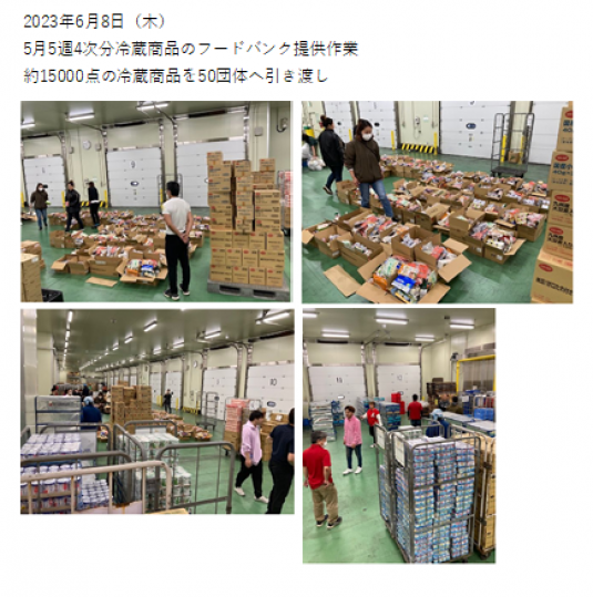 今回の台風2号の影響で、お届けできなかった5月5週の木曜日分冷蔵商品 約15,000点を「ランチサポートさん」を通して、約50の団体へお渡ししました。職員ならび、組合員の皆様にも、ご理解よろしくお願いいたします。