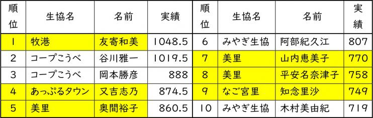 友寄和美さんが全国1位に輝きました。また、計6名がベスト10入りしました。