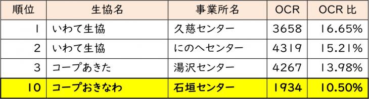 宅配小規模部門で、石垣センターが10位に入賞しました。