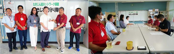 6月5日、今帰仁村社会福祉協議会さんと見守り協定を締結しました。これで、47市町村中19か所での締結となりました。締結式では田港朝茂会長から、「なきじん結ネットワーク事業」の紹介や、婦人会や青年会メンバーの高齢化がすすみ、地域を守る担い手が減少してきていること、などの説明がありました。コープおきなわへの期待も大きく、今後「なきじん結ネットワーク連絡協議会」へ参加させていただくことになりました。