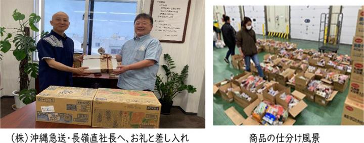 台風2号の影響でお届け出来なくなった、冷蔵商品約1万5千点を「おきなわこども未来ランチサポート」を通して、約50の地域団体へ提供しました。