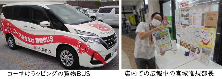 石嶺団地の組合員Aさんはリハビリ先のケアマネージャーに勧められて買物BUSの利用を始めました。「これまで利用していたスーパーと比べて、コープ首里は品揃えの量、センス、そして何よりも職員の対応が全然違うことに驚いた。特に、ベーカリーの子の対応が印象深かった、英語の商品名の意味を聞いたところ、『私にはわからないけど、聞いてきます』と言ってバックに問い合わせにいって教えてくれた。正直に素直に対応する姿勢に、コープは良く教育をしていると、とても感銘を受けました。」