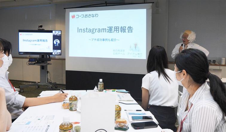 9月12日(火)日生協にて、「web担当者交流会」が4年ぶりにリアルで開催され、コープおきなわのYouTubeでおなじみの?アイアム博士がコープおきなわのSNSの取り組みを紹介しました。
