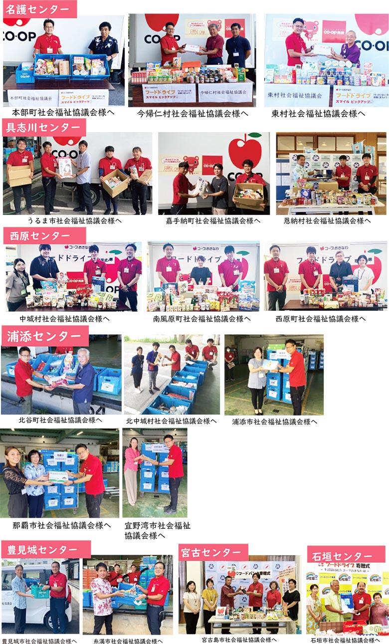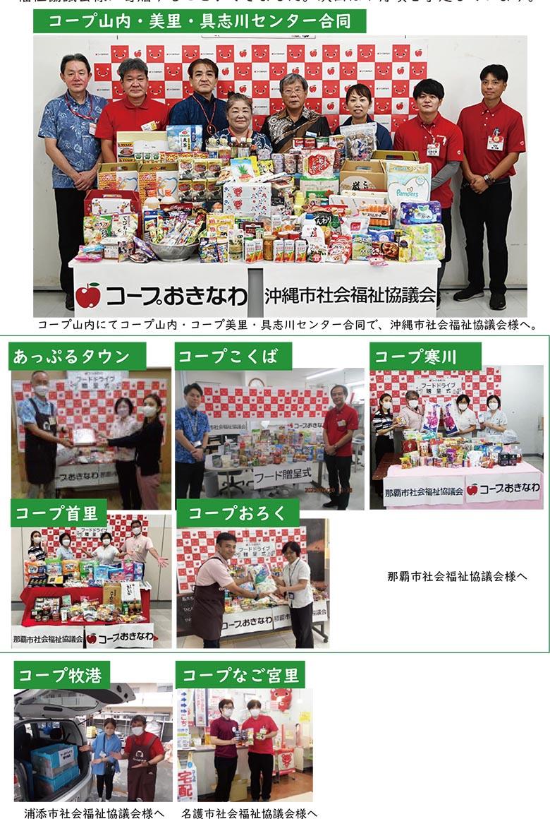 店舗では、9月末現在、組合員さんや職員から寄贈いただいた商品約1,000点を店舗所在地にある那覇市社協、浦添市社協、沖縄市社協、名護市社協の4社協に贈呈しました。
