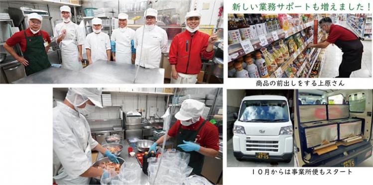 現在は10名(内指導員2名)の社員があっぷるタウン1階の製造室で勤務し、責任感と向上心をもって、日々惣菜づくりに励んでいます。また、これまでの彼らの頑張りが認められ、今年7月、買い場での商品の前出しやカート回収といった店舗のサポート業務も加わり、さらに10月からは事業所便を受託し、業務を開始しました。これまで以上に安全・丁寧・正確な業務をおこないます。