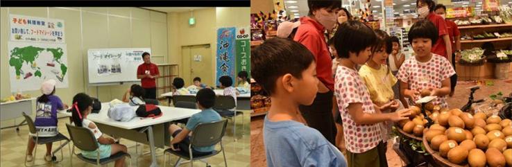 9月9日、「カマDo委員会」とコープおきなわのコラボ企画として、子ども料理教室「お買い物して、フードマイレージを学ぼう」を開催しました。小学1年生~4年生の子ども達8名が参加しました。