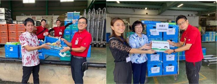 古堅専務は「SDGS活動の一環として、『住み続けられる街づくり』『貧困問題』の解決に取り組んでいます。今回、コープおきなわとして初めてフードドライブに取り組んだところ、組合員さんからたくさんの商品とお気持ちを頂きました。こうして今日の場でみなさまへ引き継ぐことができ、感謝の気持ちでいっぱいです。」と挨拶しました。
