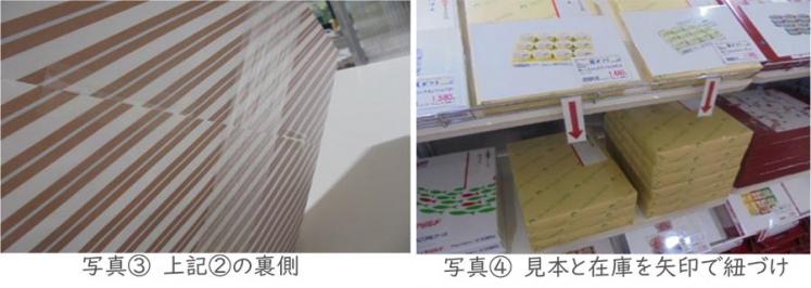 ※写真を商品に直接貼り付けるのではなく、写真③のように薄いフィルムを巻いて、その上に写真を貼り付けることで、包装紙が破れる事がないように気配り。