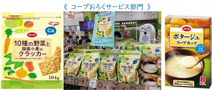 たからばこ商品(主役)の「10種の野菜と国産小麦のクラッカー」に「ポタージュスープ」を関連陳列(脇役)することで、「プラス1品!」の購入を後押し。結果、脇役の「ポタージュスープ」が供給点数157点(前月比249%)と大きく伸長し、経営貢献。