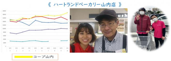 1月パンの日は過去最高の19万円の実績で全店1位。主な要因は①利用者メンバーがマルチでパン業務を出来るように共育したこと、②winwinの関係。ベーカリーの呼び込み君をフロア部門の仲松佐也伽さんが協力し、利用者メンバーは年末繁忙期のカート回収をお手伝い。