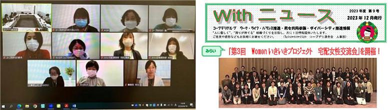 左)Zoomによる当日の様子 右)宅配事業女性職員だけでも、大所帯のコープデリグループ4月18日、C-WESTでは、コープみらい・コープデリ連合会「Womanいきいきプロジェクト」のみなさんと、『女性活躍推進』をテーマに、オンライン交流会を開催しました。