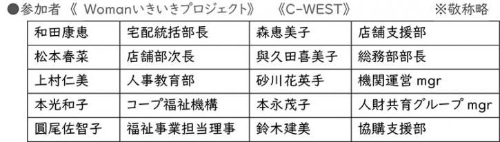 「女性が働き続けることは、昔より制度や環境が整ってきたとは言え、時代が変わってもまだまだ当事者は大変、一人で悩みを抱え込まずにまわりに相談したり、励ましあえる環境をつくっていきたいと改めて思いました。」by圓尾さん 「とても有意義な時間になり、元気をいただいた貴重な場でした。(思わず、個人的な質問もしてしまいました…お答えいただきありがとうございました^^)また、県外の生協の方と距離を超えて繋がれた感覚と今後の活動やお仕事へのヒントを頂いたことが何より嬉しい場でした。」 by砂川さん 「昨年参加した外部研修で、生協以外の大手企業の女性たちと一緒に半年間学びました。ちょうど砂川さんと同じ世代で、子育て中のワーママたちがキラキラと、でも必死に、時にはもがきながら、泣きながら、頑張っている姿をみてとても刺激を受けました。もし、興味があるようでしたら、ご連絡下さいませ♪