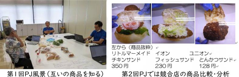 県内企業の商品を購入してきて、比較・分析しました。併せて、上地社長はコープこうべでの障がい者雇用研修参加の際に関西圏の人気ベーカリー店の視察を行い、開発商品のイメージを膨らませています。