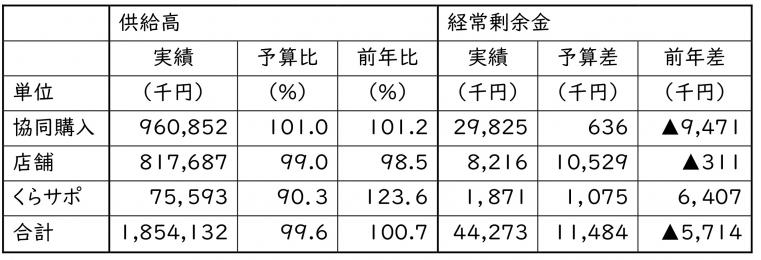 供給高は18.5億円で、予算比99.6%と若干予算に届きませんでしたが、①物件費が予算内に収まった(6月まで電気代の公的補助あり)こと、②子会社からの受取配当金があったこと、から、経常剰余金は4.4千万円で、予算を1.1千万円超過しました。