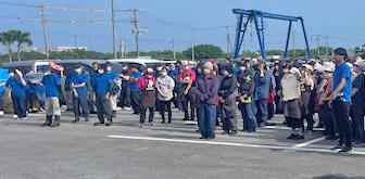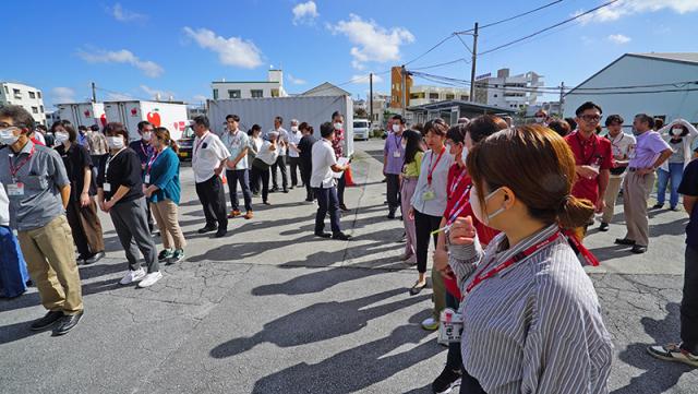 10月21日(月)残暑厳しい秋晴れのもと、浦添センター本部消防避難訓練を実施いたしました。 当日は浦添センター本部で働く約100名の職員が参加して10:00の時報とともに訓練がスタート。組合員活動室からの火災発生を想定し、発見者が非常ベルを押すところから訓練を開始しました。