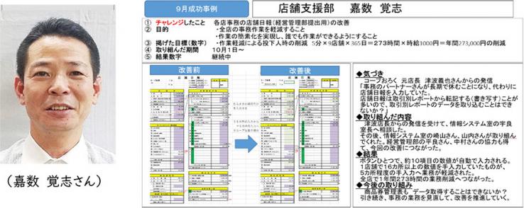 今回は、店舗支援部の嘉数覚志さんが起点となり、部署を超えた連携支援で、「現場の困りごと」の改善をすすめていく事例の紹介です。