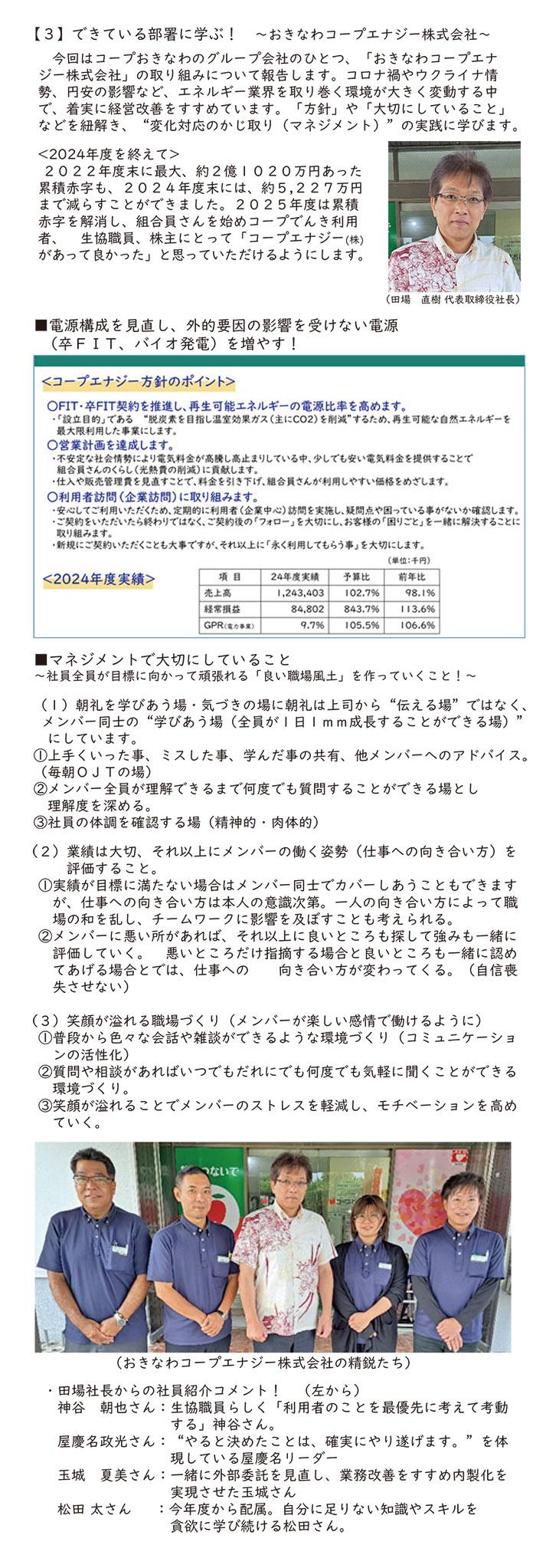 三つ目が、コープおきなわの職員として、店舗事業部の職員として、