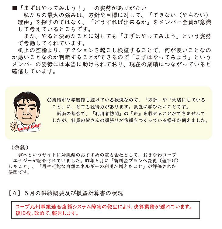 コープ首里 事務の皆さん 推薦者 コープこくば 西村 尚子さん 理由 コープベーカリーの値上げの際、急にも関わらずほとんどの商品POPを変更し、 データを共有していただきました。おかげで2~3時間の残業時間を回避することができました。 5月4週 |