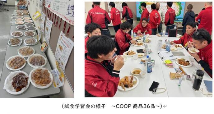 ②休憩コーナー:日生協九州支所担当(戸田さん) ![]() 協同購入の主力商品、「冷凍米飯(4品)」と「ふっくらオムライス」の学習を行いました。一昨年、コープ九州組合活動交流会の後に工場視察した事もあり、視察で感じたことを組合員さんご自身が紹介する場面がありました。試食を通して、味を確認し、商品の良さを再確認する場となりました。 ③商談室:日生協九州支所長(清水さん) (5)試食学習会 ~COOP商品36品の試食!~ ![]() ■第4四半期の行動計画づくり ![]() ■特徴的な声とまとめ ![]() ![]() (まとめ) ![]() ○ここまで大きな学習会は、初めての開催で不安もありましたが、関係者の協力で多くの学びとなりました。支援して下さった皆様、あらためて感謝です。想定していた以上の学びや交流が出来たと思います。また、組合員が一緒に学習会に参加したり、工場視察の感想を話す事で、組合員組織である事が実感できたのではないかと思います。開催趣旨(3項目)の実現を目指し、第4四半期の行動が変化できる様に協同購入事業本部でサポートします。